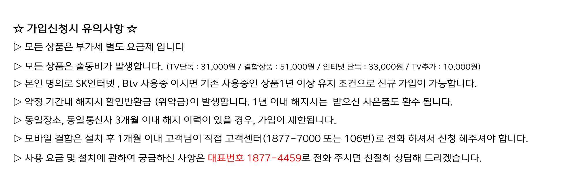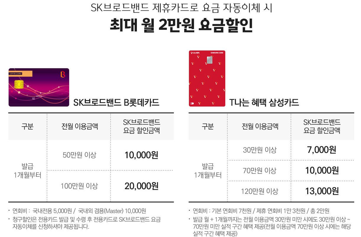 현금 사은품 SK휴대폰(SK알뜰폰) 결합시 => 10,000원 추가 할인 |
