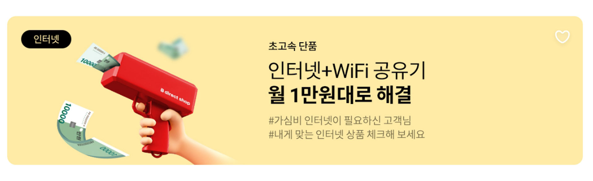※ 결합상품은 와이파이 별도 입니다. 기가와이파이 추가시 상품에 따라 1,000원~2,000원 추가요금이 발생됩니다.